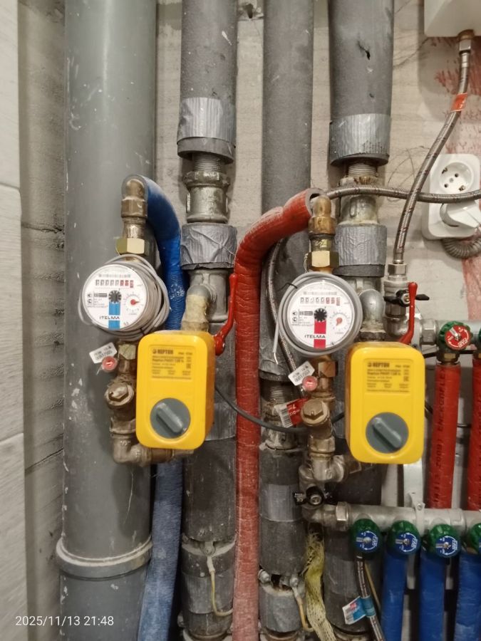 В комплект входит 1 контроллер и 2 счетчика воды.